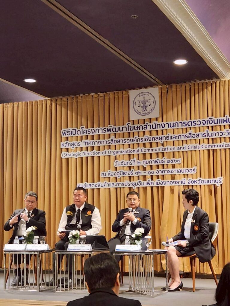 วันจันทร์ที่ ๒ กุมภาพันธ์ ๒๕๖๙ เวลา ๐๙.๐๐ – ๑๖.๓๐ น. นางสาวอรุณี รวดเร็ว ผู้อำนวยการสำนักตรวจเงินแผ่นดินจังหวั นครราชสีมา เข้าร่วมโครงการพัฒนาโฆษกสำนักงานการตรวจเงินแผ่นดิน หลักสูตร “ทิศทางการสื่อสารองค์กรเชิงกลยุทธ์และการสื่อสารในภาวะวิกฤต” (Strategic Direction of Organizational Communication and Crisis Communication) โดยมี