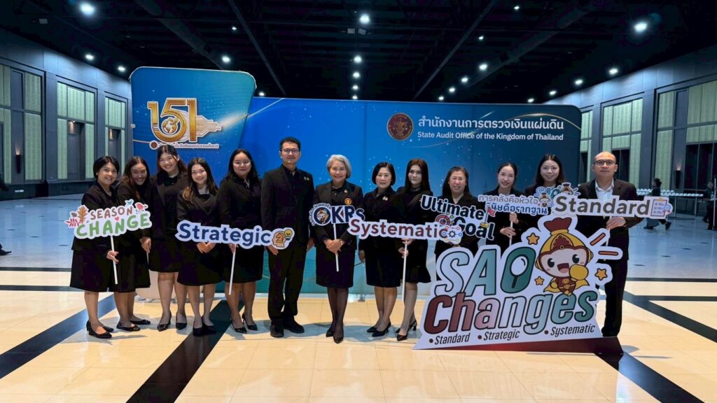 วันพุธที่ ๔ กุมภาพันธ์ ๒๕๖๙ เวลา ๐๙.๐๐ – ๑๖.๐๐ น นางสาวอรุณี รวดเร็ว ผู้อำนวยการสำนักตรวจเงินแผ่นดินจังหวัดนครราชสีมา พร้อมด้วยข้าราชการและลูกจ้าง สำนักตรวจเงินแผ่นดินจังหวัดนครราชสีมา เข้าร่วมโครงการสัมมนาทางวิชาการสำนักงานการตรวจเงินแผ่นดิน ประจำปี ๒๕๖๙ เรื่อง สตง.สู่การเปลี่ยนแปลง (SAO Changes) โดยมี นายเฉลิมพล เพ็ญสูตร ประธานกรรมการตรวจเงินแผ่นดิน เป็นประธานในพิธี ณ ห้องแกรนด์ไดมอนด์ บอลรูม อาคารชาเลนเจอร์ ศูนย์แสดงสินค้าและ การประชุม อิมแพ็ค เมืองทองธานี จังหวัดนนทบุรี